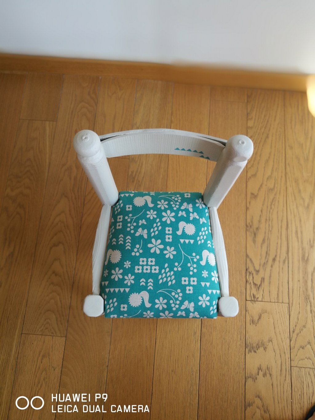 Una sedia piccina ma resistente, realizzata con prodotti atossici e attenti alla salute dei più piccoli. La seduta, foderata con un tessuto misto lino e cotone, è stata trattata con un impermeabilizzante, per respingere più agevolmente macchie ed eventuale cadute di liquidi.