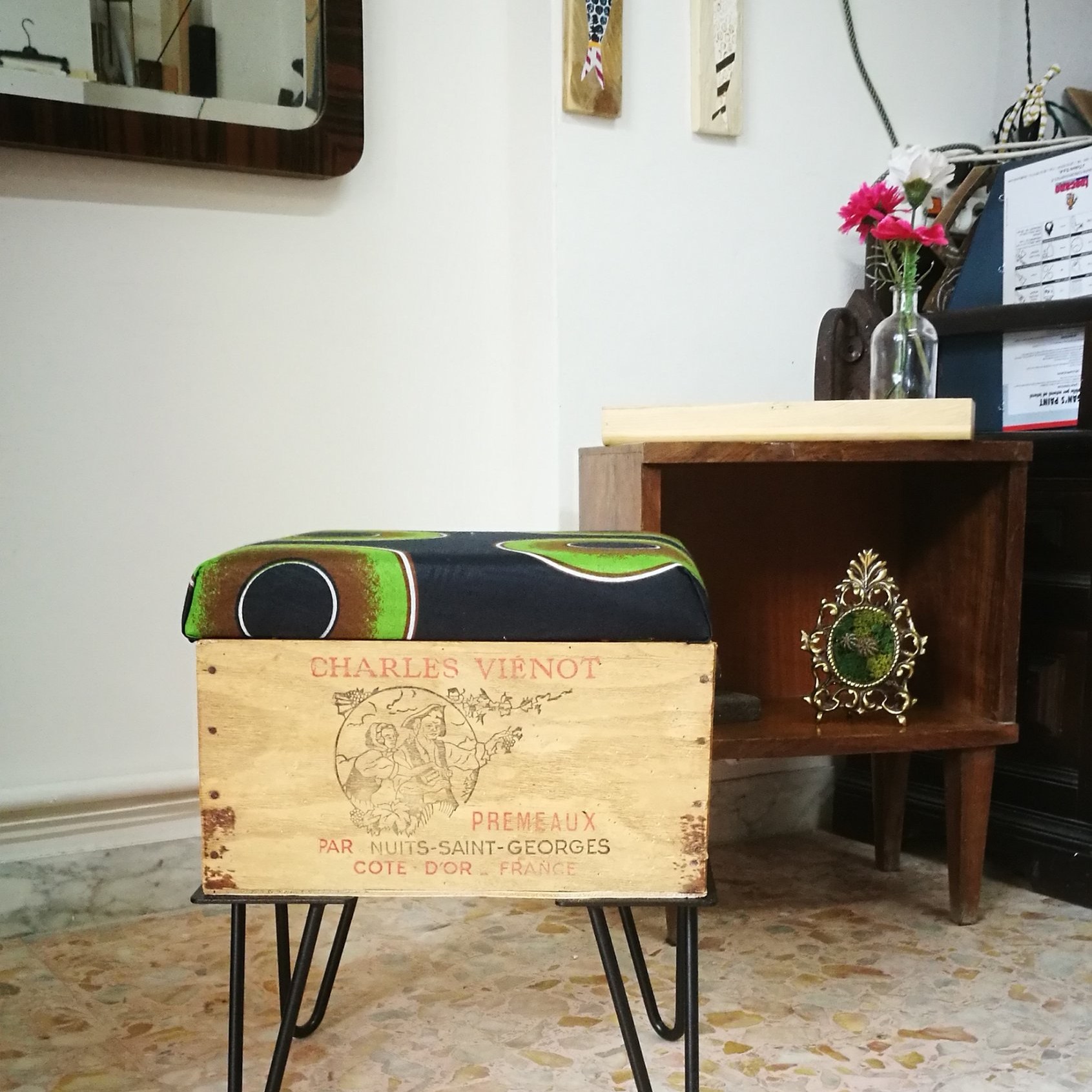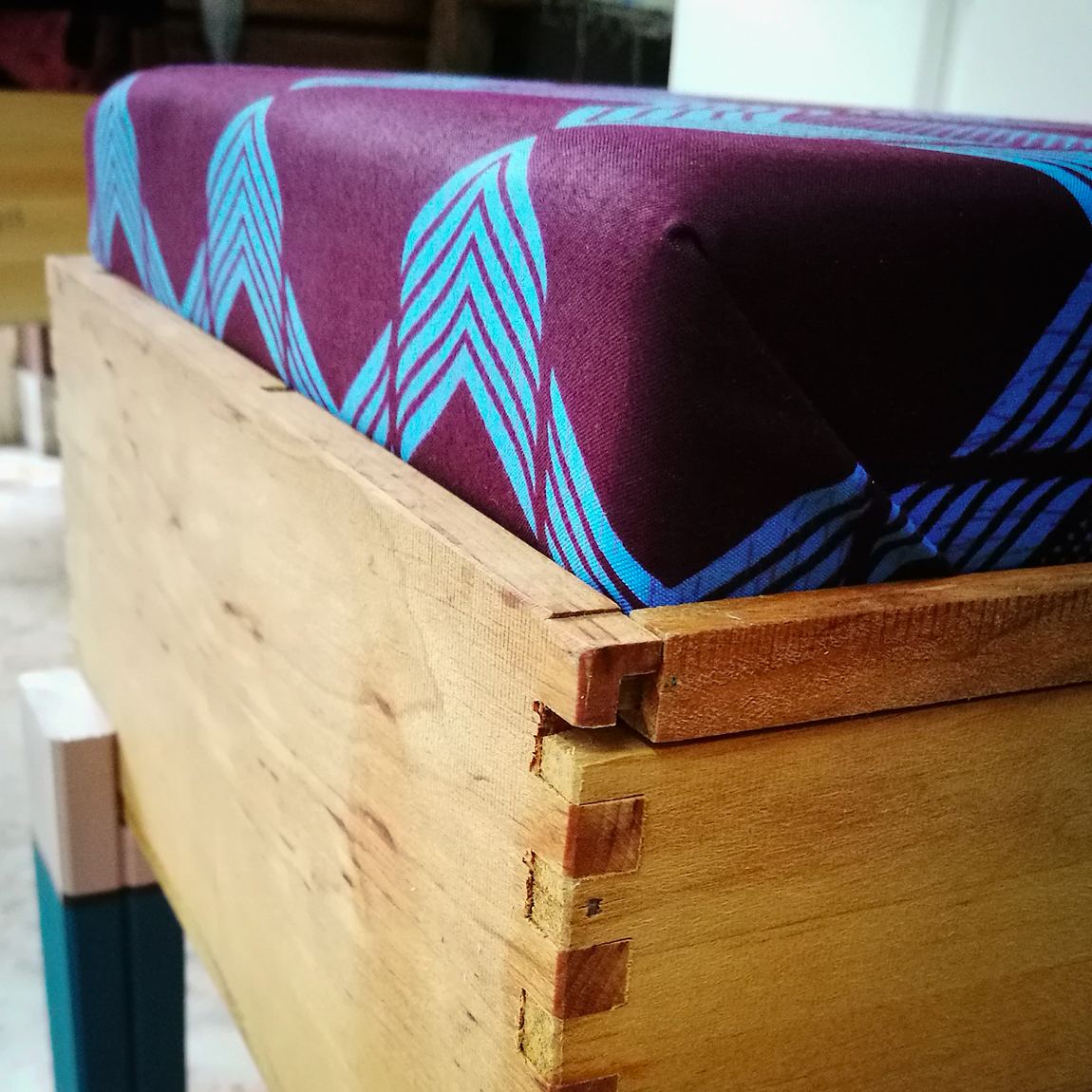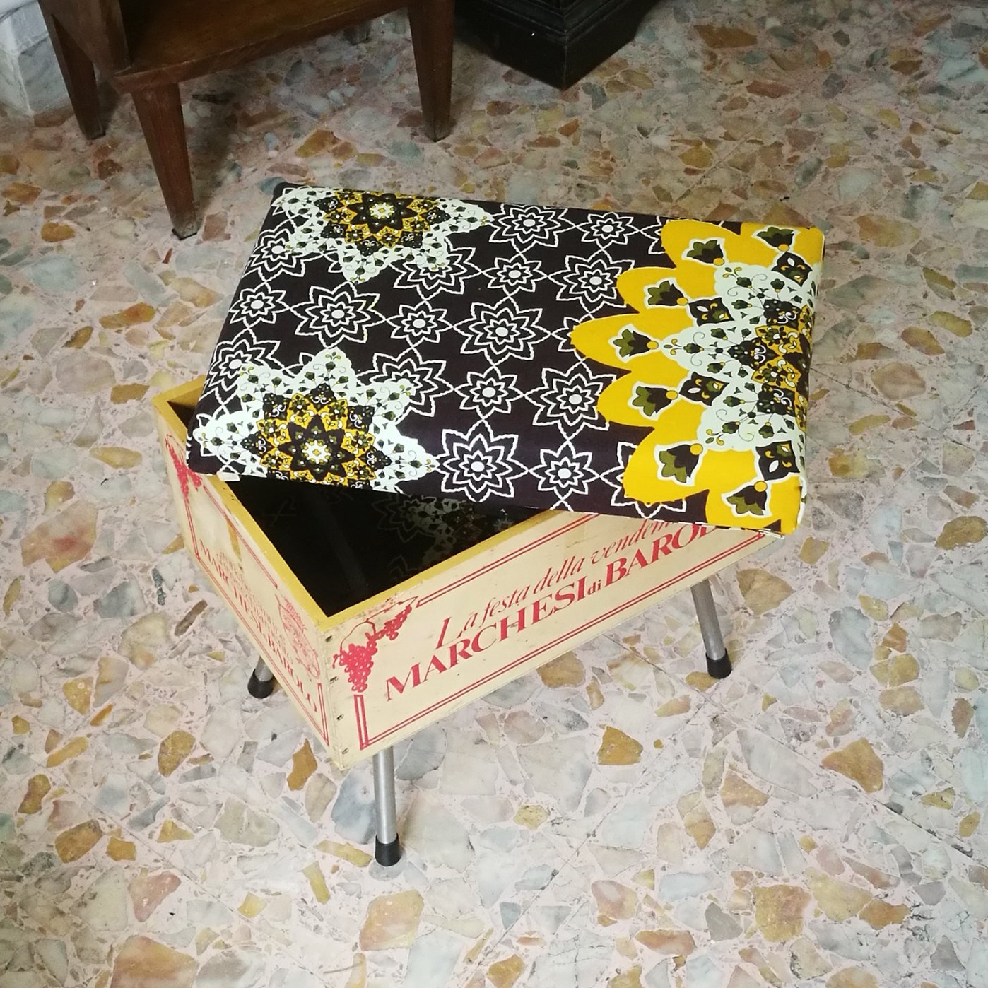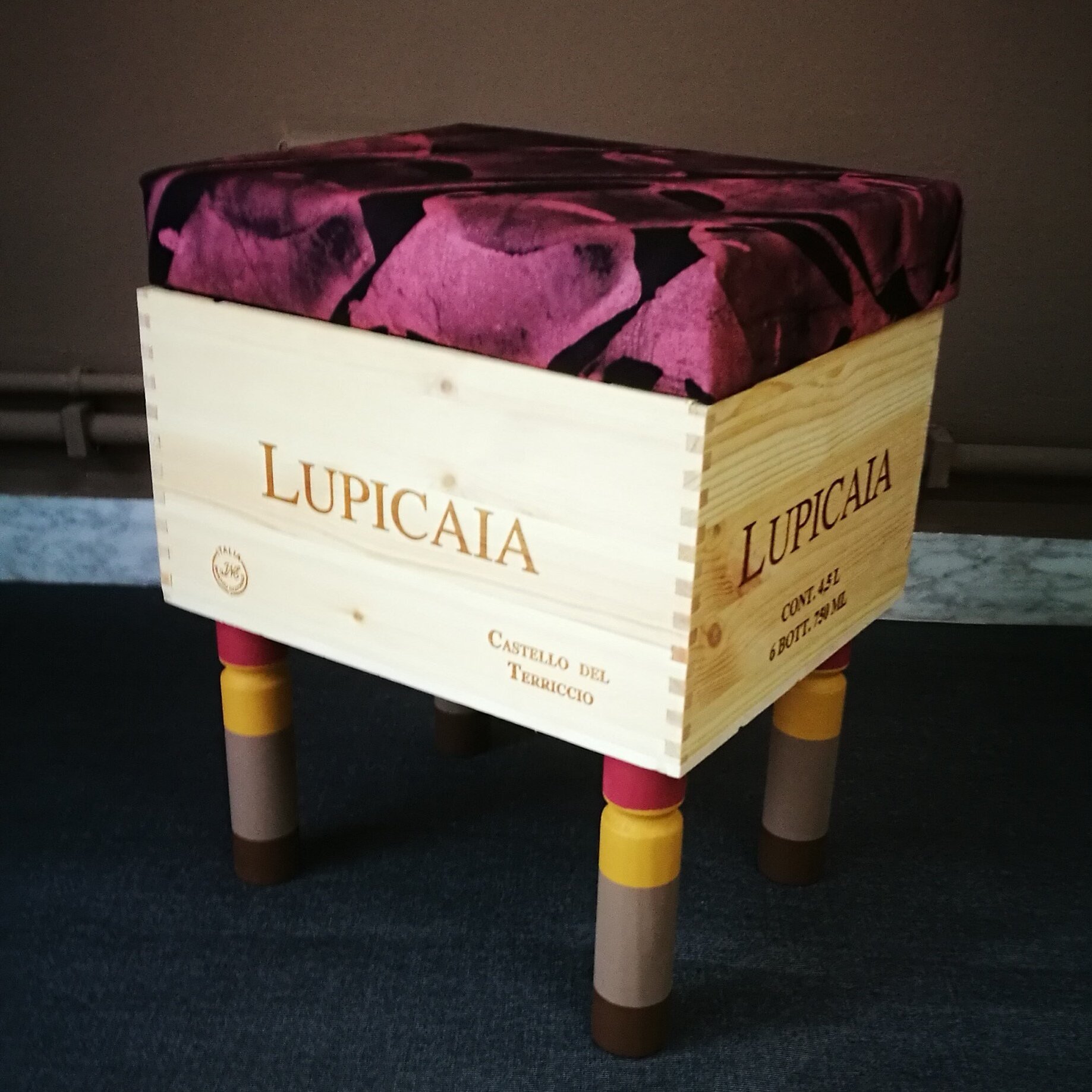 Sono realizzate a mano riusando vecchie casse di bottiglie di vino. Sono munite di un comodo cuscino rivestito con tessuto wax, dai colori esplosivi e geometrie affascinanti. Le CasseDivine sono un oggetto di design: pezzi unici esteticamente validi e pienamente funzionali.