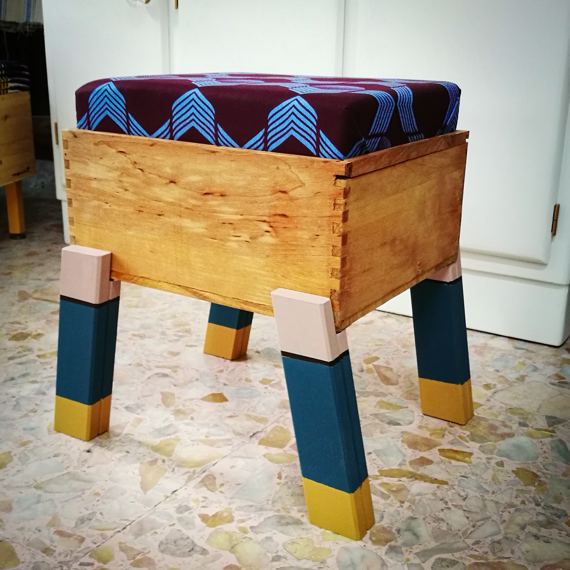 Questi sgabelli fanno parte della mia linea dedicata all’upcycling. Linea creata per sottolineare l’importanza di riutilizzare quanto di esistente in questo pianeta. Vuole affermare che non sempre il bello risiede in ciò che è nuovo di fabbrica. Possiamo rigenerare bellezza anche assemblando ciò che già abbiamo.